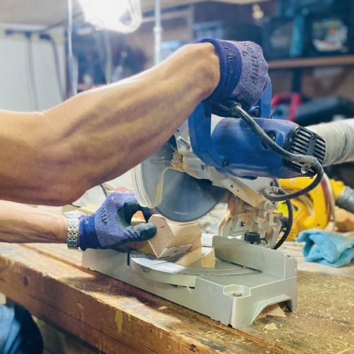 「花岡工務店」は、木造のリフォーム工事を得意とする職人集団。彼らが積み木作りに挑戦したのは、自らが誇る大工の仕事を多くの人に知ってほしい、そして子どもに胸を張れる存在でありたいという想いからだった。
